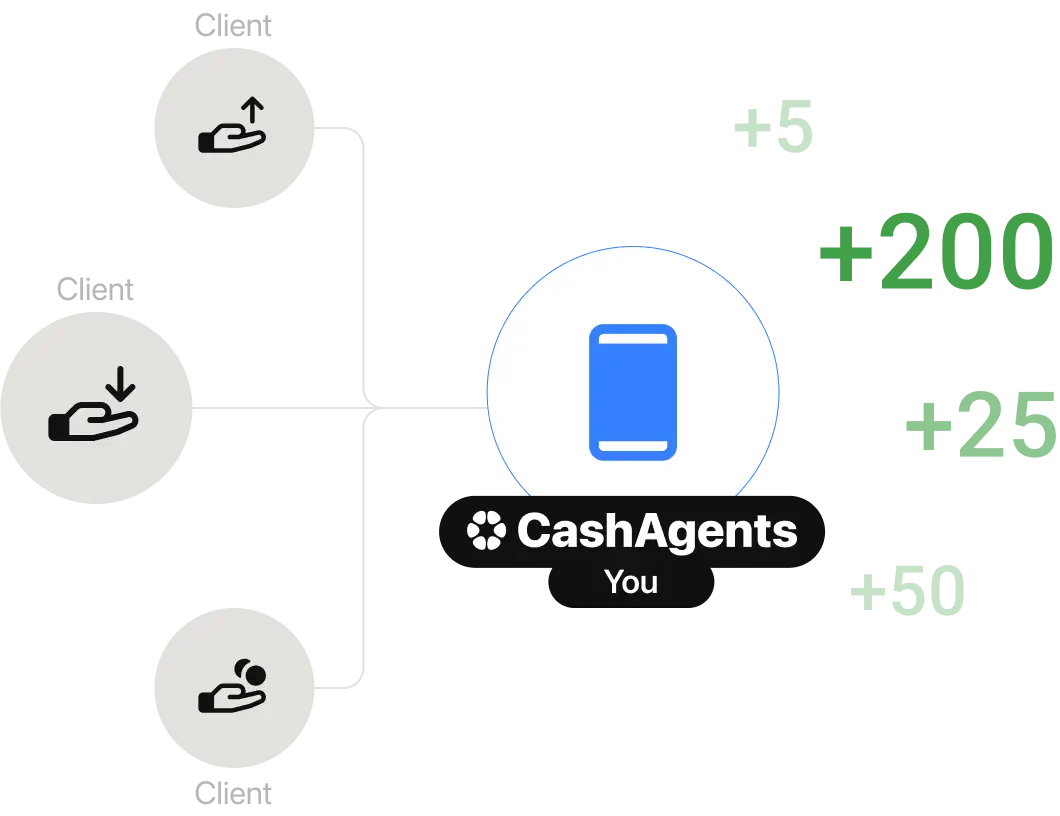 A CashAgents representative earns commissions by bringing in clients and handling transactions, online or offline.
